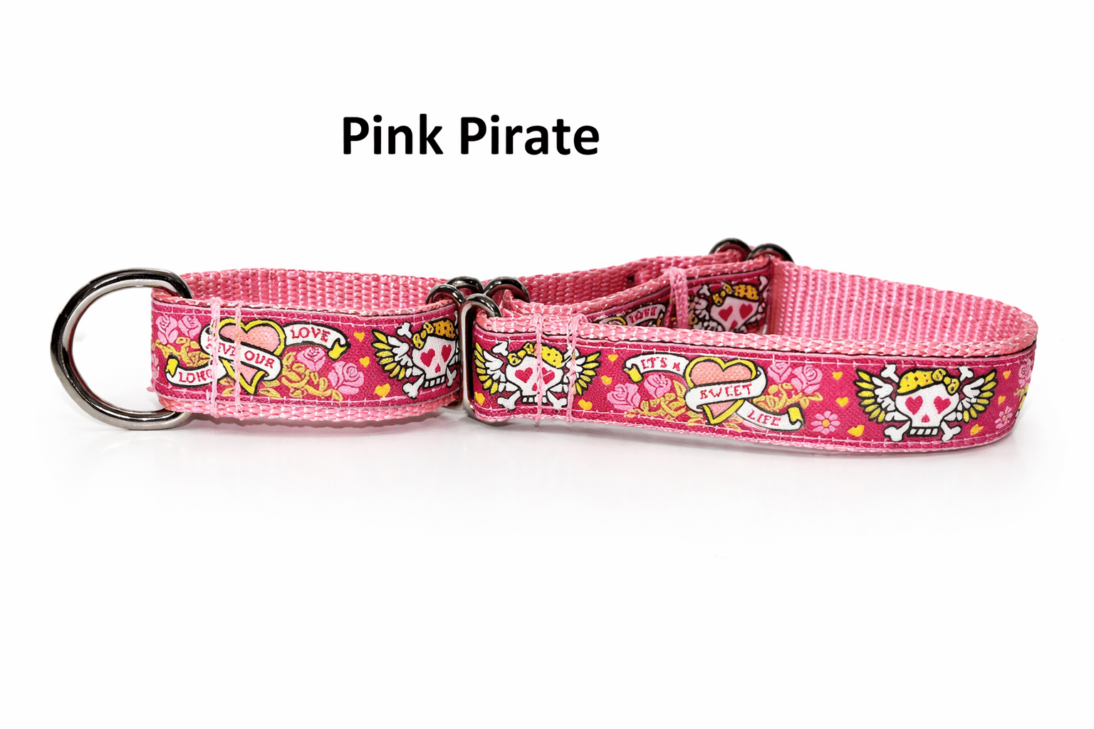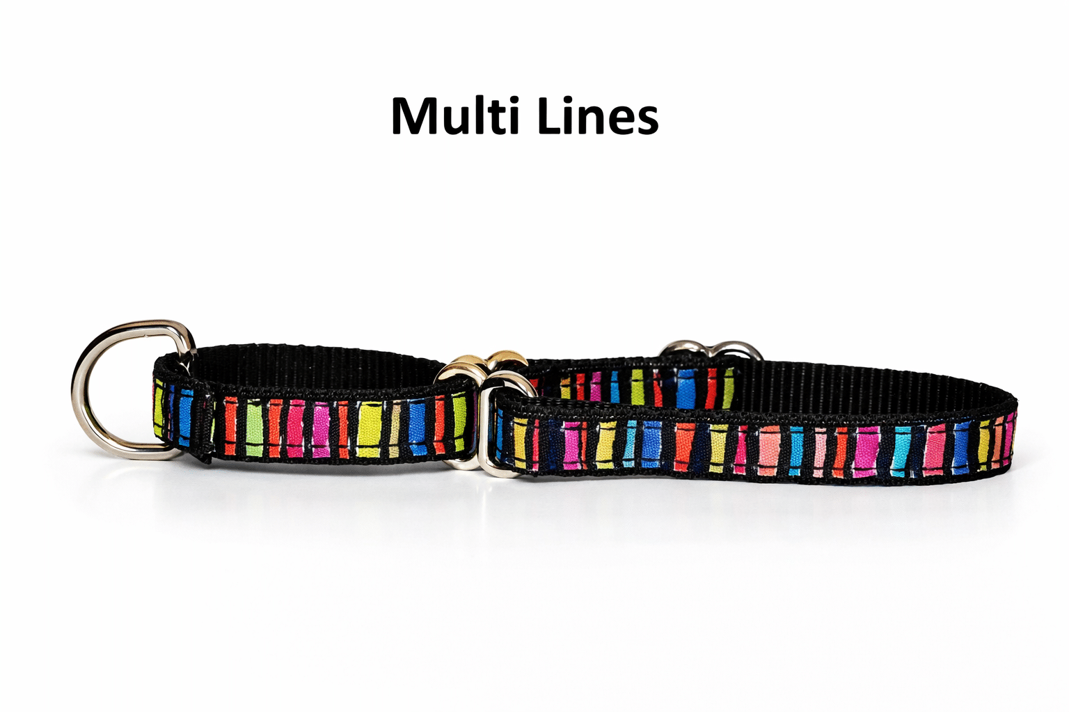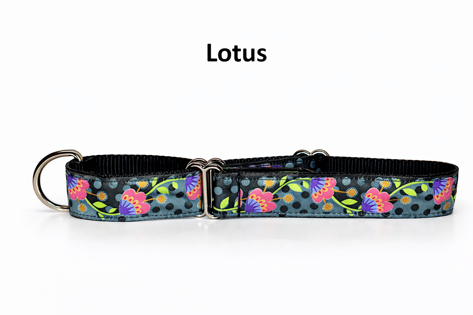 Martingale Dog collars fit looser than traditional collars and therefore can be more gentle on fur around the neck. However, when a dog pulls in any direction…even backwards… a Martingale collar disperses pressure evenly around the neck. This provides extra security in preventing a dog from pulling out of it’s collar. (Other collars put pressure only on the trachea, allowing dogs to slip out of their collars.)
